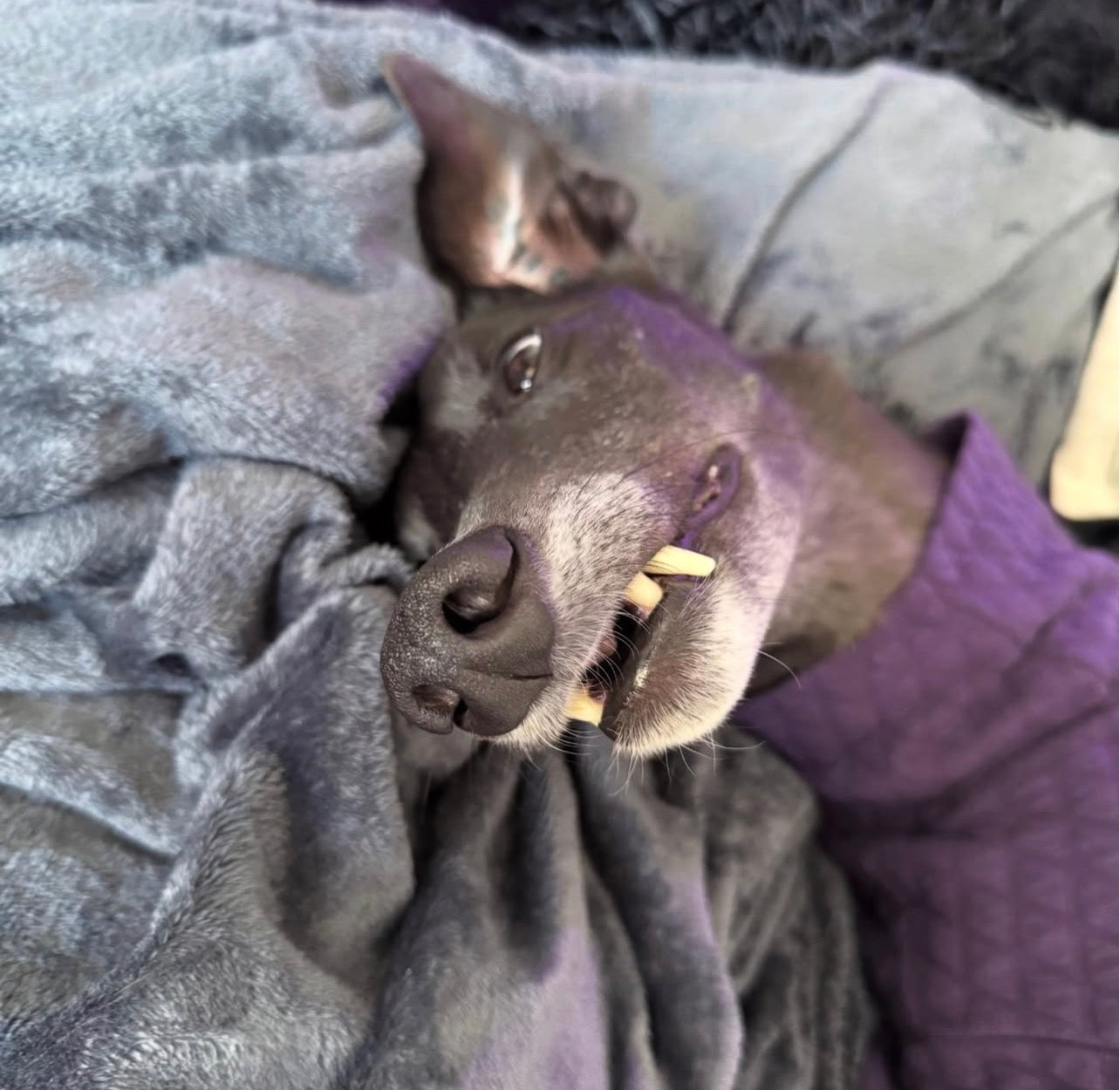 Chief loves his walks, but in between them, he’s happy to lounge around. He still has a cheeky side—insisting on getting on our bed when we’re out for longer than he’d like, though he doesn’t bother when we’re home! He’s already been on a camping trip, taken car rides, visited the beach, and we look forward to making many more memories with him.We hadn’t initially planned to let him in the bedroom, but now we actively bring his bed in when we call it a night, as he just wants to be close to us—and we love that feeling too. Chief is perfect for us! I had registered to adopt with a few greyhound rehoming agencies, but I can’t fault the team at Love A Greyhound. They are patient, understanding, and truly committed to doing what’s best for the dog to ensure the perfect fit. I can’t recommend them enough!
