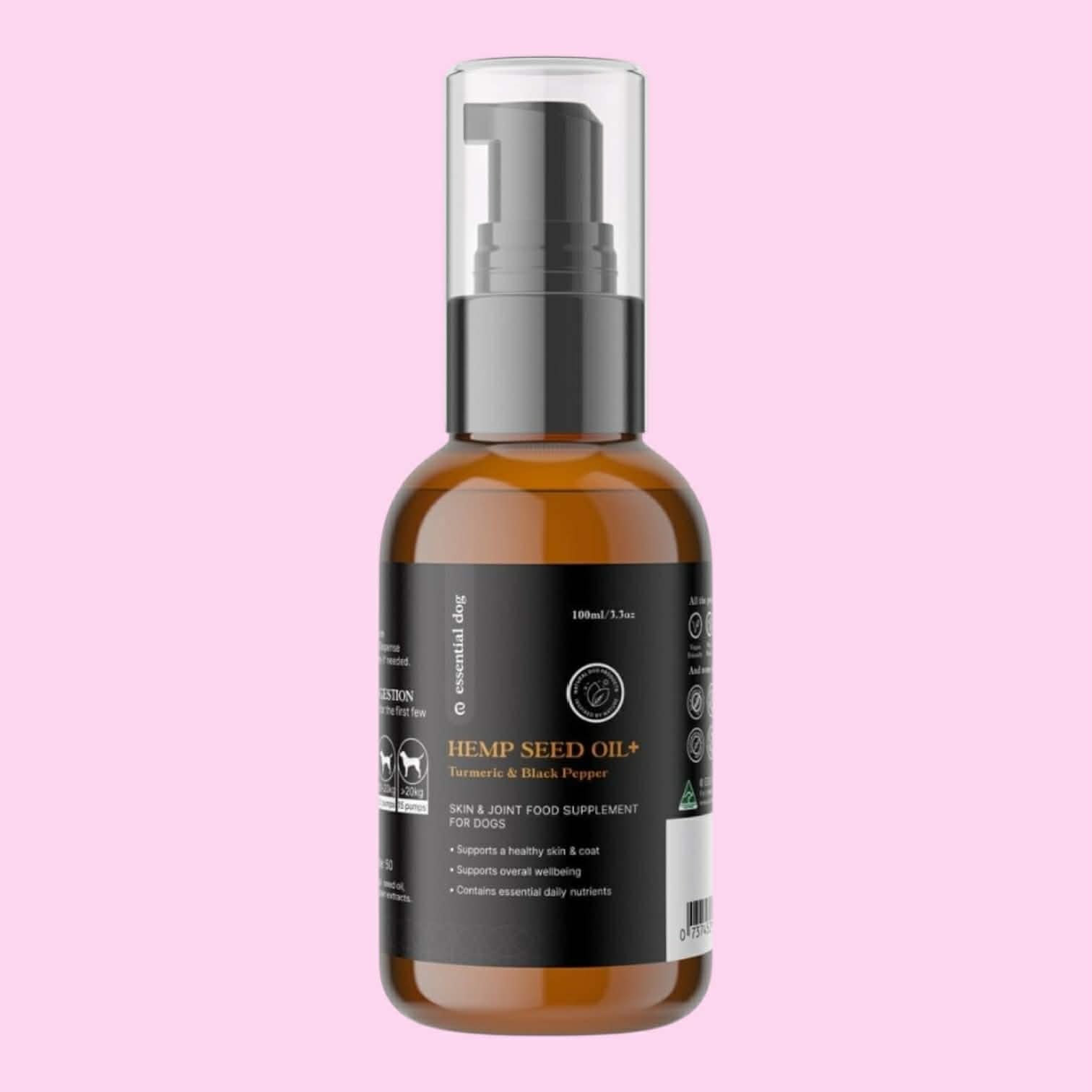 Give your furry friend the gift of health with our 100% Hemp Oil with Turmeric and Black Pepper for Dogs. Specially formulated to combat skin allergies and dietary deficiencies, this nutrient-rich oil features a powerful 1:3:1 ratio of Omega 3, 6, and 9, promoting a shiny coat, healthy skin, and improved mobility. Enhanced with black pepper to boost turmeric absorption by up to 2000%, your dog will experience the benefits in just weeks. Made from raw, pure, and cold-processed Australian hemp, our oil is free from chemicals and preservatives, making it safe for ingestion or topical application. Plus, our innovative dispensing system allows for quick and mess-free serving directly into your dog's food, ensuring no waste or contamination. Suitable for all breeds and ages, this vegan-friendly oil is the sustainable alternative to fish oil that your pet deserves.