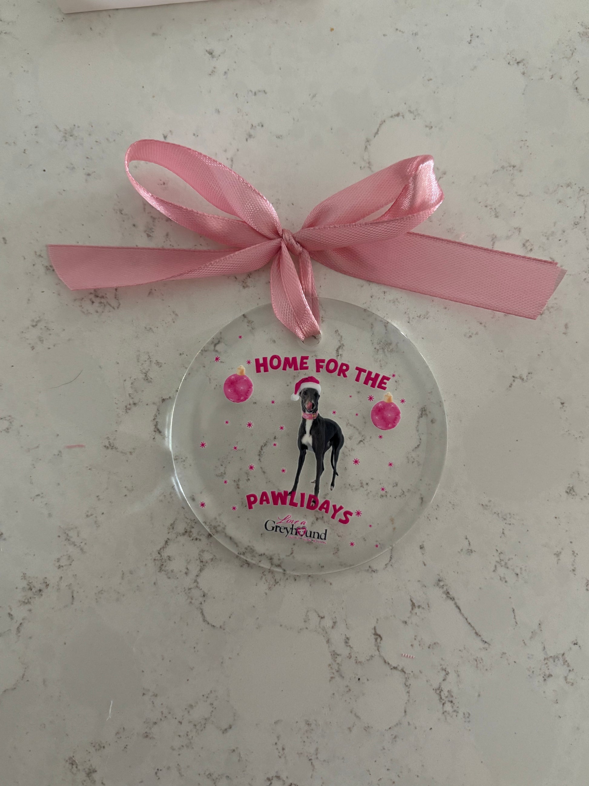 This refined Glass Bauble Set features bespoke UVDTF stickers with a striking raised 3D design, displaying festive messages like “Ho Ho Ho" Zorrow, “Home for the Pawlidays,” Barney and "Naughty is a new Nice" Ace.” Each 8cm bauble in soft pink hues is enhanced with coordinating ribbon, creating a sophisticated and personalised holiday ornament. The complete set arrives elegantly presented in a Merry Christmas gift bag.