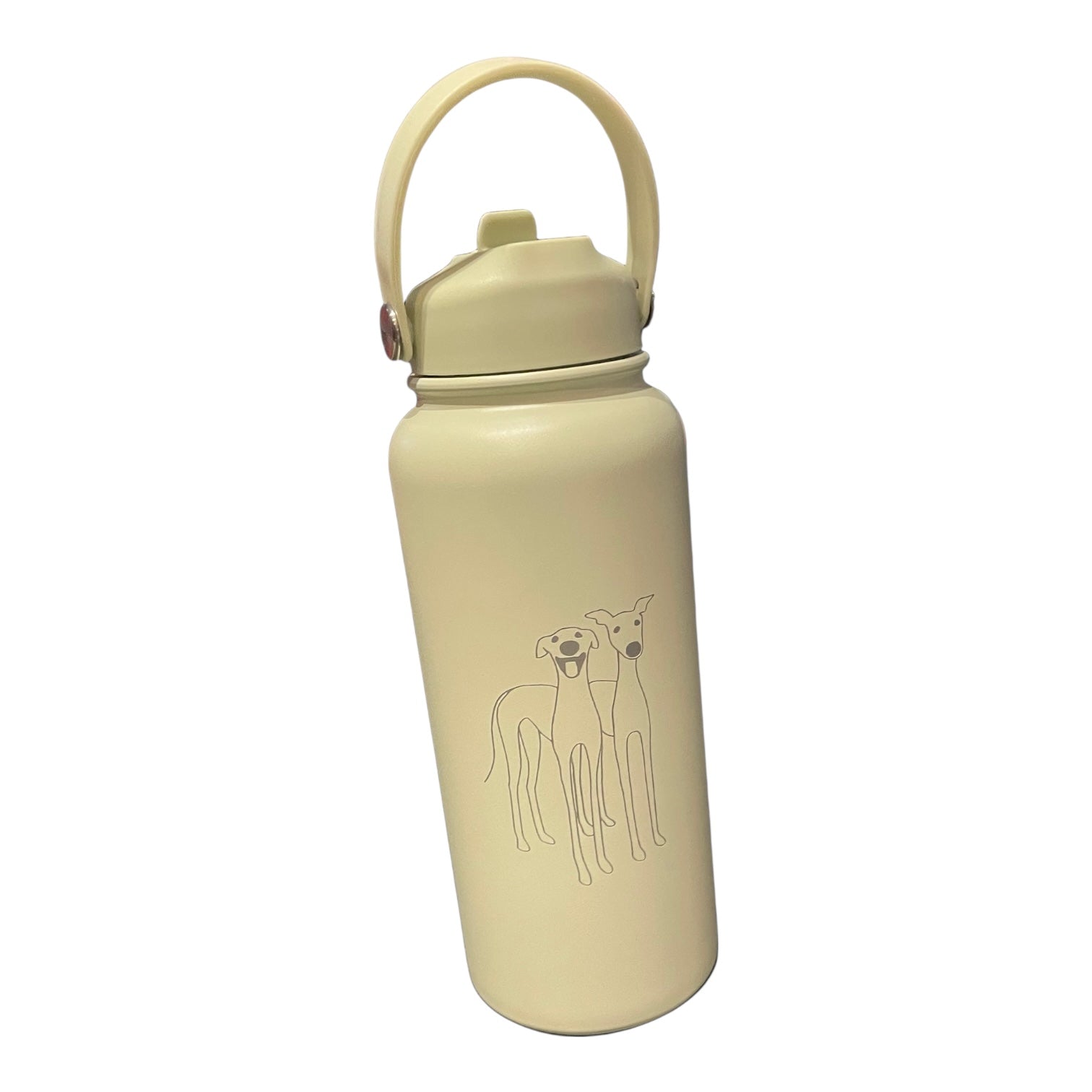 Engraved 1L Water Bottle with Carry Handle - Laser engraved 2 cute greyhound's image.