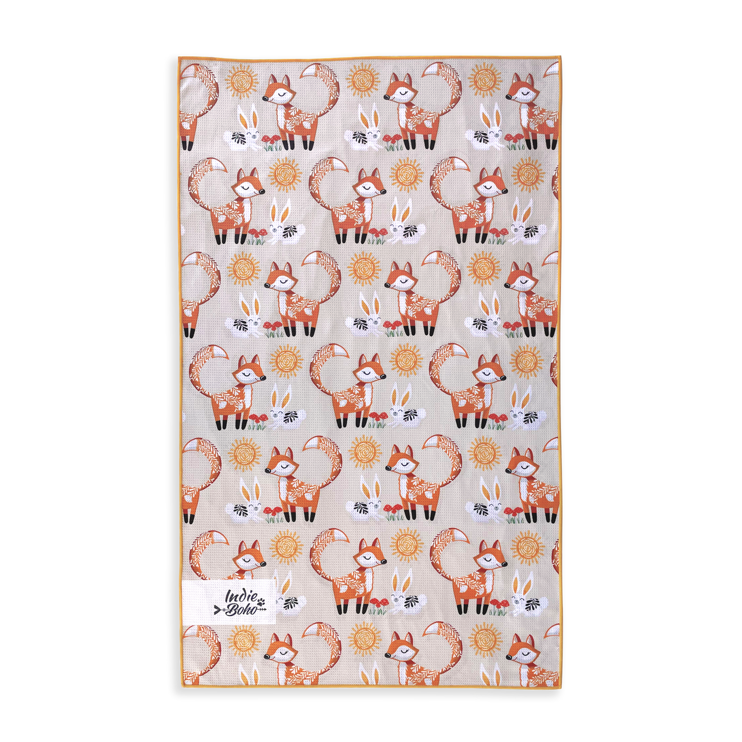 Foxy Tales has been beautifully illustrated by Australian artist Debi Hudson. This quick-dry towel will accompany the bed and blanket perfectly in the home. It features a fox and rabbit with the addition of a sun, on a cream-beige background.