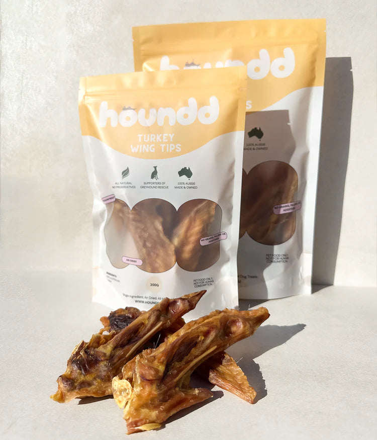 Give your pup a taste of Houndd Co. Turkey Wing Tips—made from high-quality Australian turkey wings, air-dried to preserve their natural flavour and crunch.