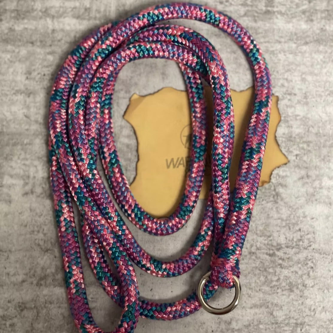 These Leads are crafted from premium Australian-made equine-grade rope, featuring a 10mm diameter and 150cm or 180cm in length. Made of 100% polyester double braid, these leads offer exceptional UV resistance, colourfastness, and durability. They are soft to the touch, washable, and resistant to rot, mildew, and abrasion, ensuring comfort and longevity for both handler and animal. Each lead includes a heavy-duty nickel-plated snap clip and a welded ring on the handle, perfect for attaching keys or waste bags, combining practicality with expert-quality construction.
