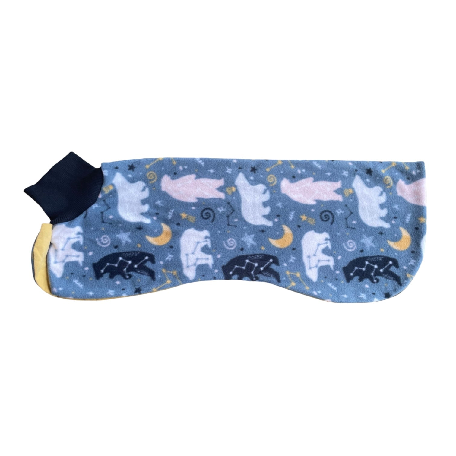 The Polar Bears Coat features a soft fleece outer and a cosy pink flannelette lining — perfect for cool-weather walks or post-nap struts around the yard.